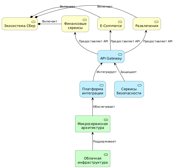 На территории России одним из самых ярких примеров успешной экосистемной модели является Сбер, который на наших глазах трансформировался из классического банка, с традиционным подходом к корпоративной архитектуре, в многопрофильную экосистему, объединяющую финансовые сервисы, электронную коммерцию, развлечения, доставку и другие направления.
