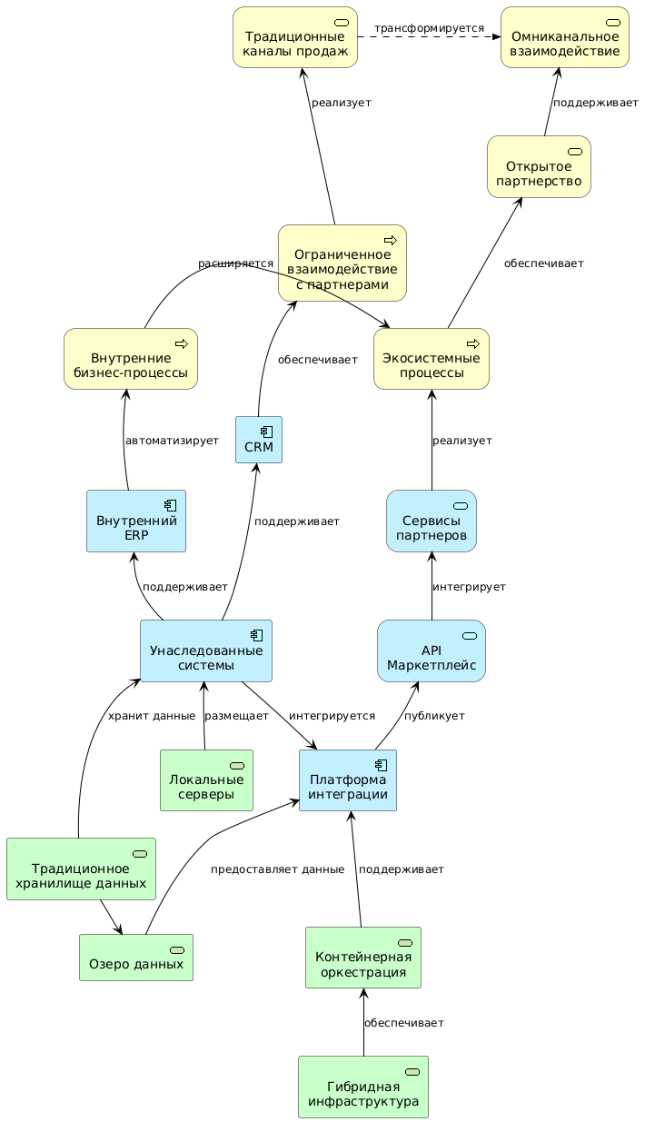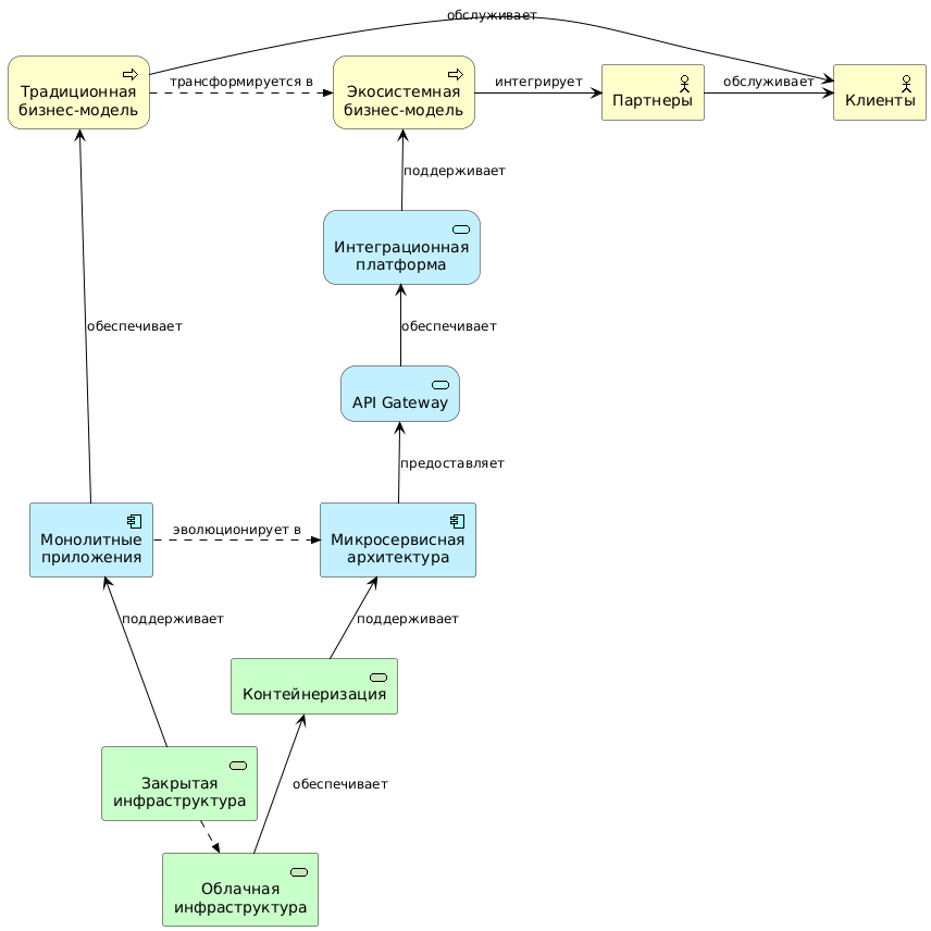 В наше время устоявшиеся подходы к построению корпоративной архитектуры кардинально меняются. Современный бизнес всё чаще существует в условиях цифровой трансформации, где платформенные экосистемы становятся ключевым драйвером роста и инноваций. Эволюционный путь трансформации от традиционной модели к экосистемной ставит перед компаниями сложные задачи.