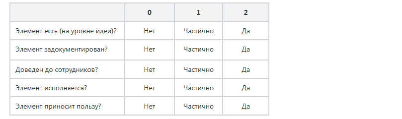 При помощи матрицы мы собираем оценки каждого сегмента. Делаем мы это обычно в режиме сессии с ключевыми сотрудниками предприятия. В матрице мы можем установить четкие критерии такой оценки.