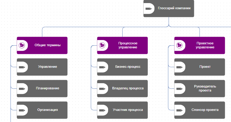 SILA Union - очень гибкая система, вы можете миксовать способы работы с понятийным аппаратом в вашем проекте. Мы рекомендуем обязательно использовать способ настройки глоссария через вики-страницы, а графические карты выбирать в качестве вспомогательного инструмента визуализации какой-то группы терминов, которые мы хотели бы с вами представить на других графических моделях: на схемах процессов, картах окружения цели и так далее.