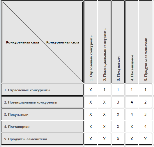Модель предполагает, что на любом рынке всегда присутствует и воздействует на всех игроков великолепная пятёрка конкурентных сил: